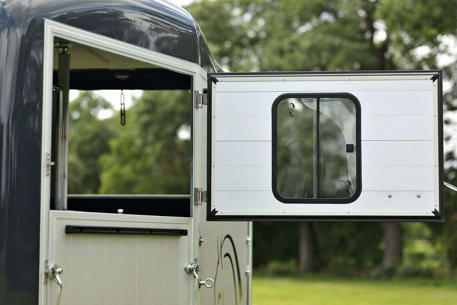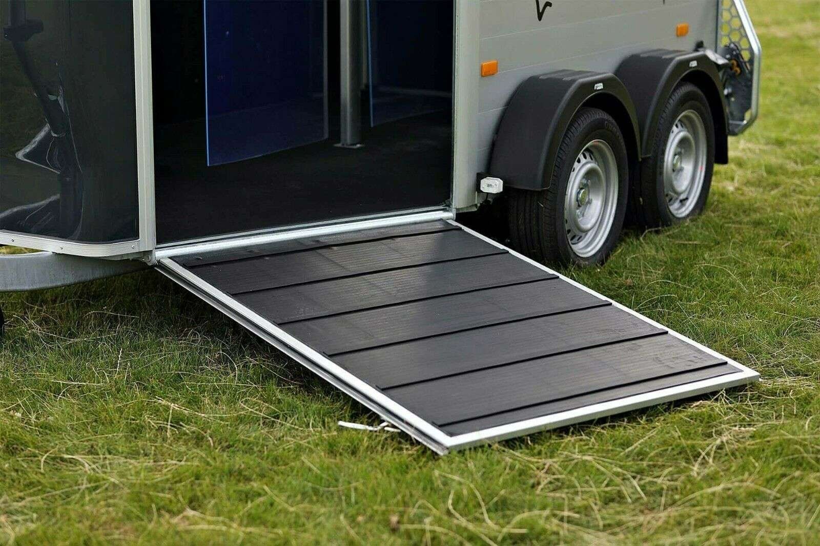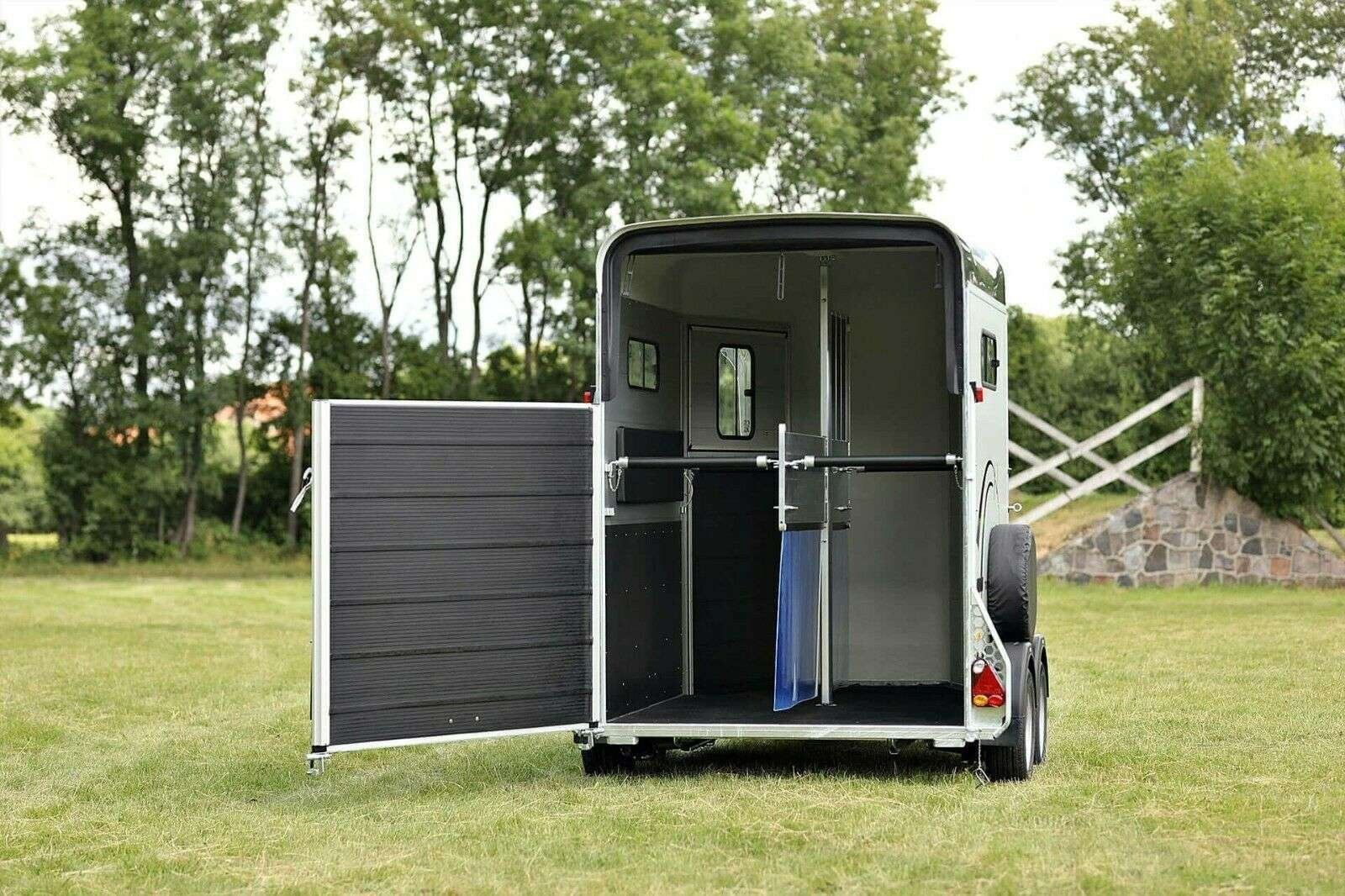 Le hayon peut être tourné et pivoté, par exemple (pour l’entrée directe des chevaux ou le chargement)
