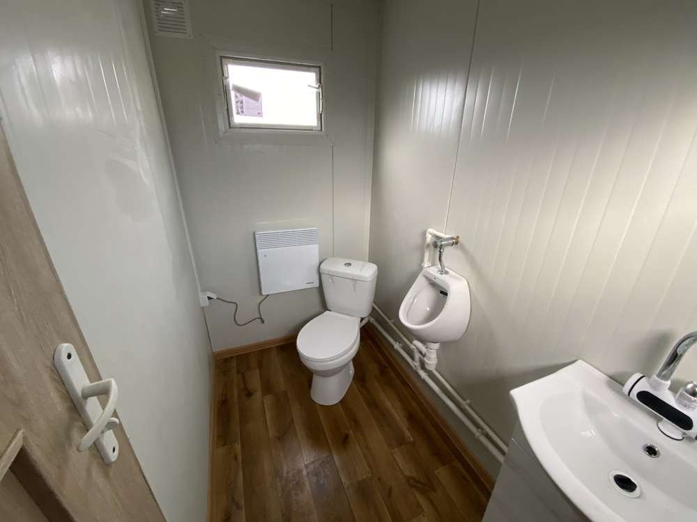 Conteneur de bureau 5×2,20 mètres, 2,62 mètres de hauteur avec WC
