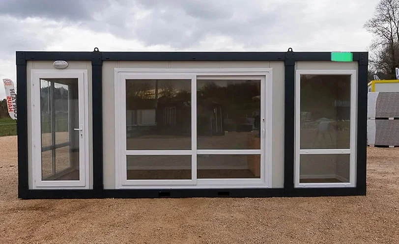 Ce module habitable comprend une grande pièce ouverte, idéale pour un aménagement personnalisé. Il est équipé d’une porte d’entrée vitrée, d’une porte d’entrée standard, de 5 baies vitrées pour une belle luminosité naturelle, d’une salle de bain avec toilettes et lavabos, ainsi que d’une cuisine fonctionnelle.